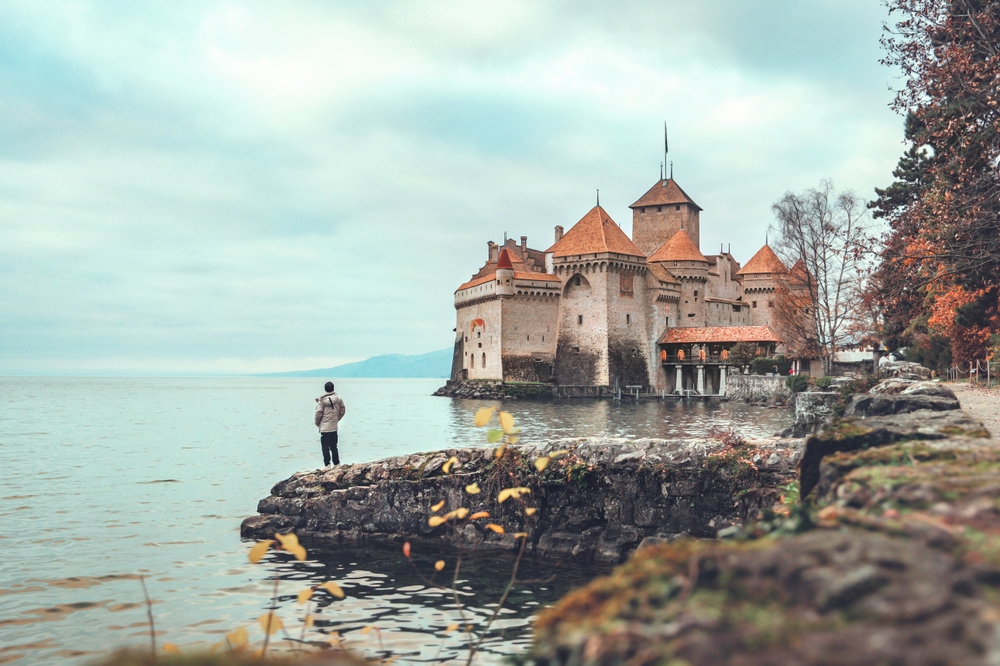 Le Château de Chillon, situé au bord du lac Léman, est l’un des plus beaux châteaux de Suisse, surtout lorsque les montagnes environnantes sont recouvertes de neige. Cette forteresse médiévale remonte au XIIe siècle et est chargée d’histoire. Le cadre magnifique du château, combiné à sa structure bien préservée, en fait un endroit prisé des touristes. En hiver, le contraste entre le paysage enneigé et le château de pierre crée une scène tout droit sortie d’un roman fantastique.
