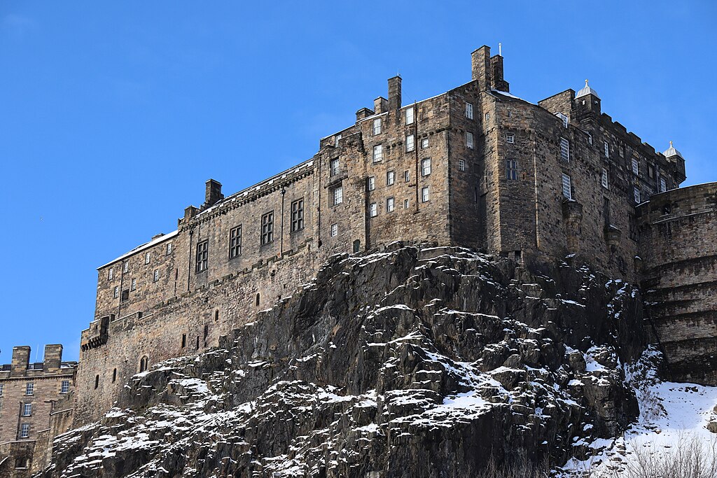 Le château d’Édimbourg, situé au sommet de Castle Rock, au cœur de la capitale écossaise, est l’un des monuments les plus reconnaissables d’Europe. Pendant les mois d’hiver, les environs connaissent souvent des chutes de neige, ce qui ajoute à la présence déjà spectaculaire du château. Le château a une histoire riche, remontant au moins au XIIe siècle, et il a joué un rôle important dans l’histoire militaire de l’Écosse. Depuis les remparts du château, les visiteurs peuvent admirer une vue panoramique sur la ville, particulièrement belle lorsqu’elle est saupoudrée de neige.