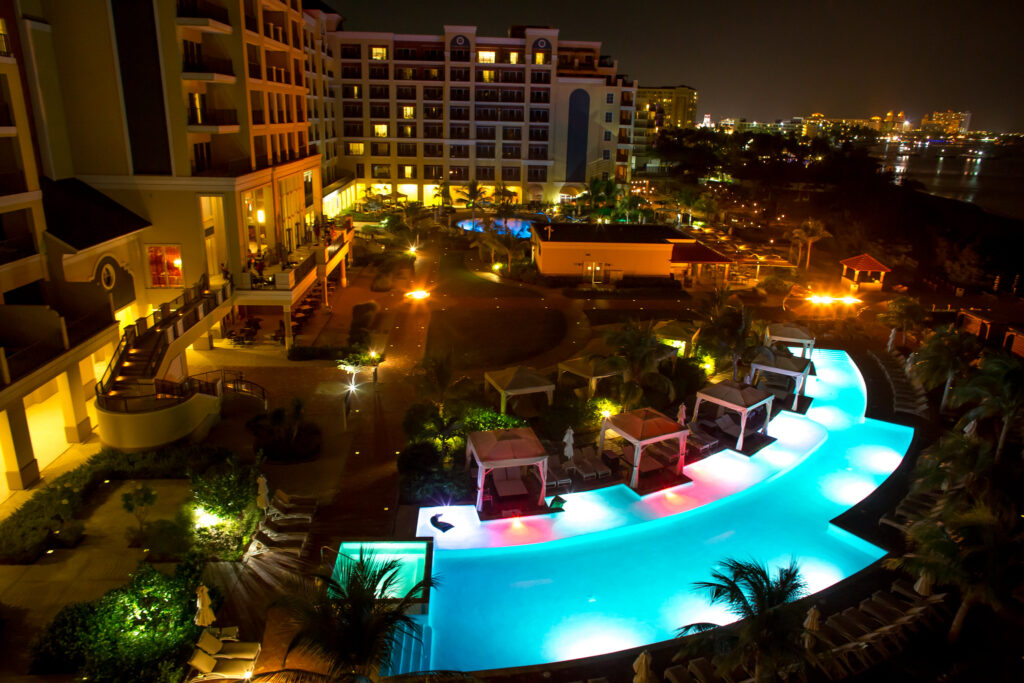 Atlantis, sur Paradise Island, aux Bahamas, est connue pour son grand parc aquatique qui remplit les journées de toboggans, de rivières paresseuses et de zones de jeux d’eau. Les forfaits familiaux comprennent souvent l’accès au parc et les repas, ce qui aide les familles à planifier leurs coûts avant de voyager. Les chambres vont des grandes suites aux chambres à thème amusantes pour les enfants.