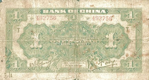 Émis juste après la chute de la dynastie Qing, ce billet de 1 dollar de la République de Chine en 1912 marque le début d’une nouvelle ère. Le premier gouvernement de la République fut rapidement confronté à l’instabilité interne et sa monnaie fut en conséquence dévaluée. Ce billet est difficile à trouver en excellent état et sa valeur est estimée entre 600 $ et 2 500 $ selon sa conservation.