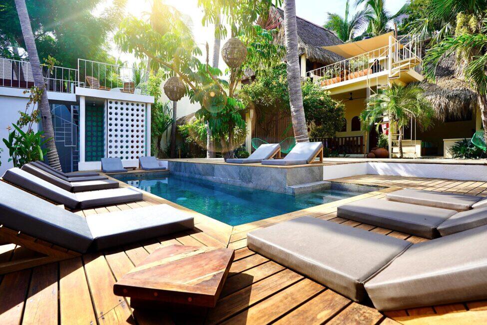 « J’ai toujours été fasciné par l’idée de créer une maison d’hôtes où les gens pourraient se sentir vraiment libres et authentiques », explique Ben. Après de nombreux voyages, il a découvert de nombreux concepts d’hôtellerie inspirants qui lui ont fait réaliser qu’il voulait créer quelque chose d’unique. Lorsqu’il est arrivé au Mexique et a découvert Zipolite, il a remarqué qu’il n’y avait pas de station balnéaire en ville qui embrassait pleinement le nudisme. Pendant la pandémie, l’opportunité s’est présentée et c’est ainsi qu’est née Casa Nudista.